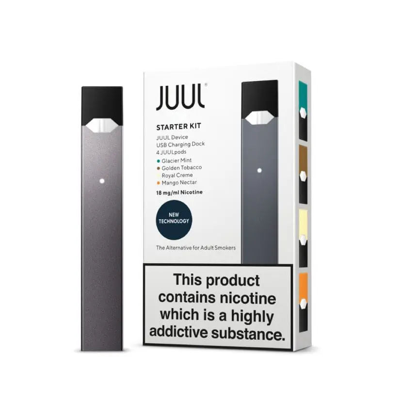 The JUUL Starter Kit is a pod system device which uses pre-filled pods. The battery is easy to use as there are no buttons, you simply place a pod into the battery and inhale. Inhaling on the pod will automatically activate the battery.